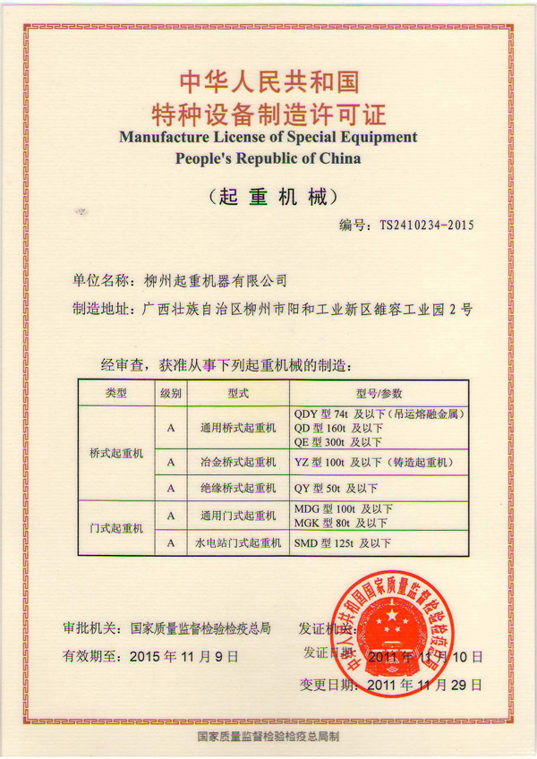 特種設(shè)備制造許可證